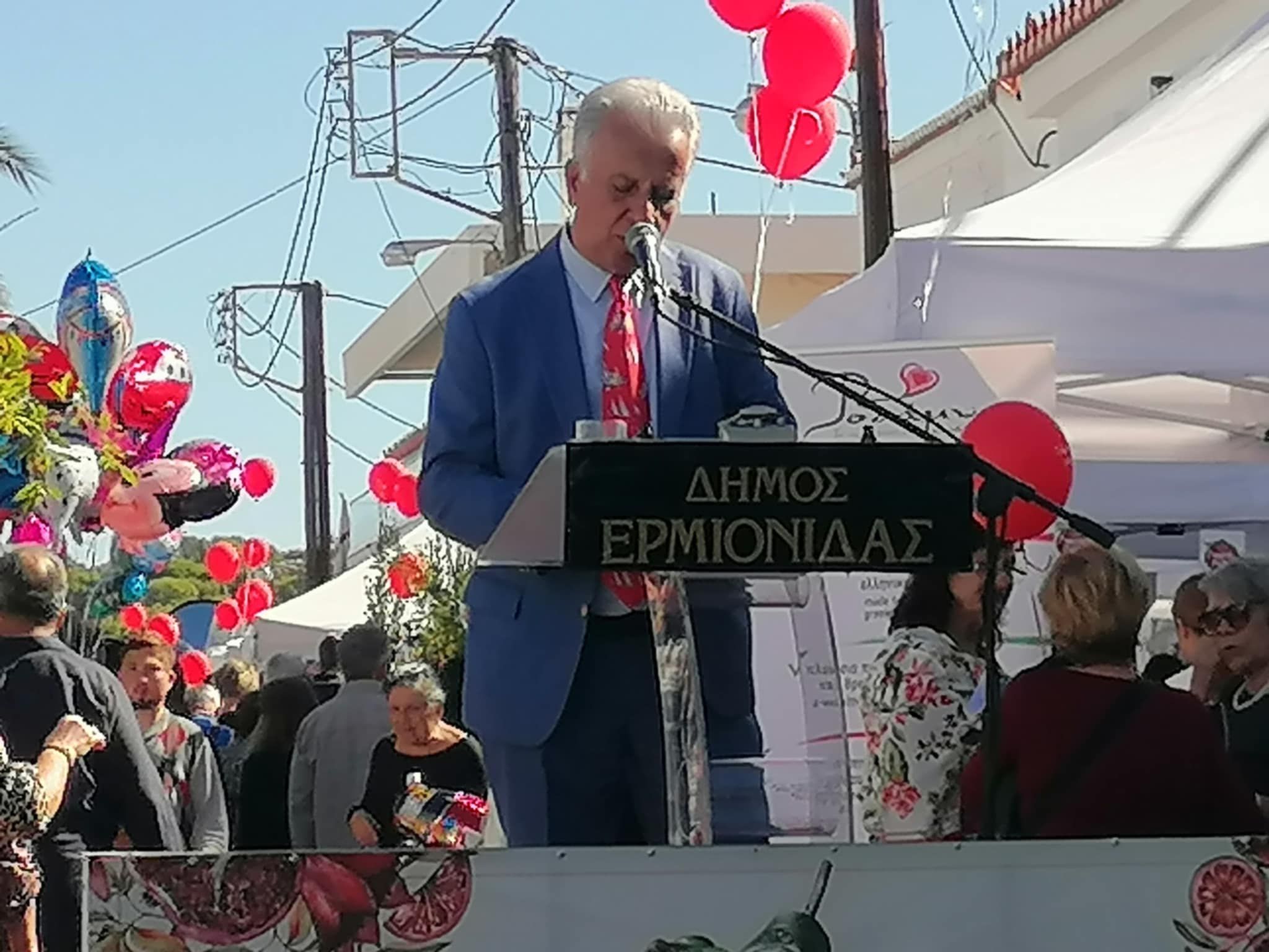 Θέλω να εκφράσω ένα μεγάλο ευχαριστώ σε όλους όσοι συνέβαλαν στην επιτυχία της φετινής γιορτής μας, στη Δημοτική Κοινότητα Ερμιόνης, στους παραγωγούς και εκθέτες που προβάλλουν με μεράκι τα τοπικά μας προϊόντα, στους πολιτιστικούς συλλόγους και εθελοντές που έδωσαν ζωντάνια και ψυχή στη διοργάνωση και φυσικά, σε όλους εσάς που ήρθατε και τιμήσατε την Ερμιόνη με την παρουσία σας.