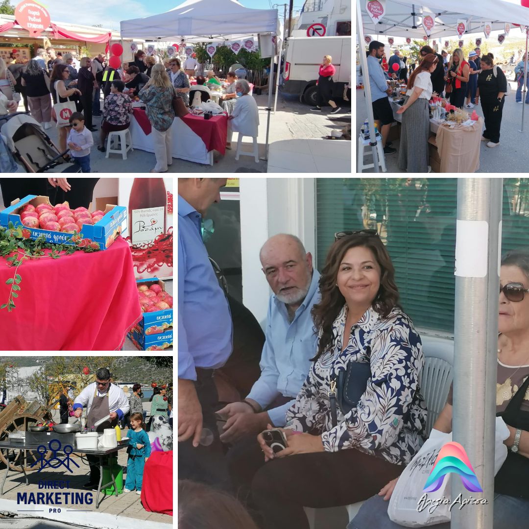 Από νωρίς το πρωί, τα περίπτερα των παραγωγών γέμισαν χρώμα και άρωμα ροδιού, με πλήθος επισκεπτών να δοκιμάζουν χειροποίητες μαρμελάδες, γλυκά, φυσικούς χυμούς και λικέρ, όλα βασισμένα στο ντόπιο ρόδι.